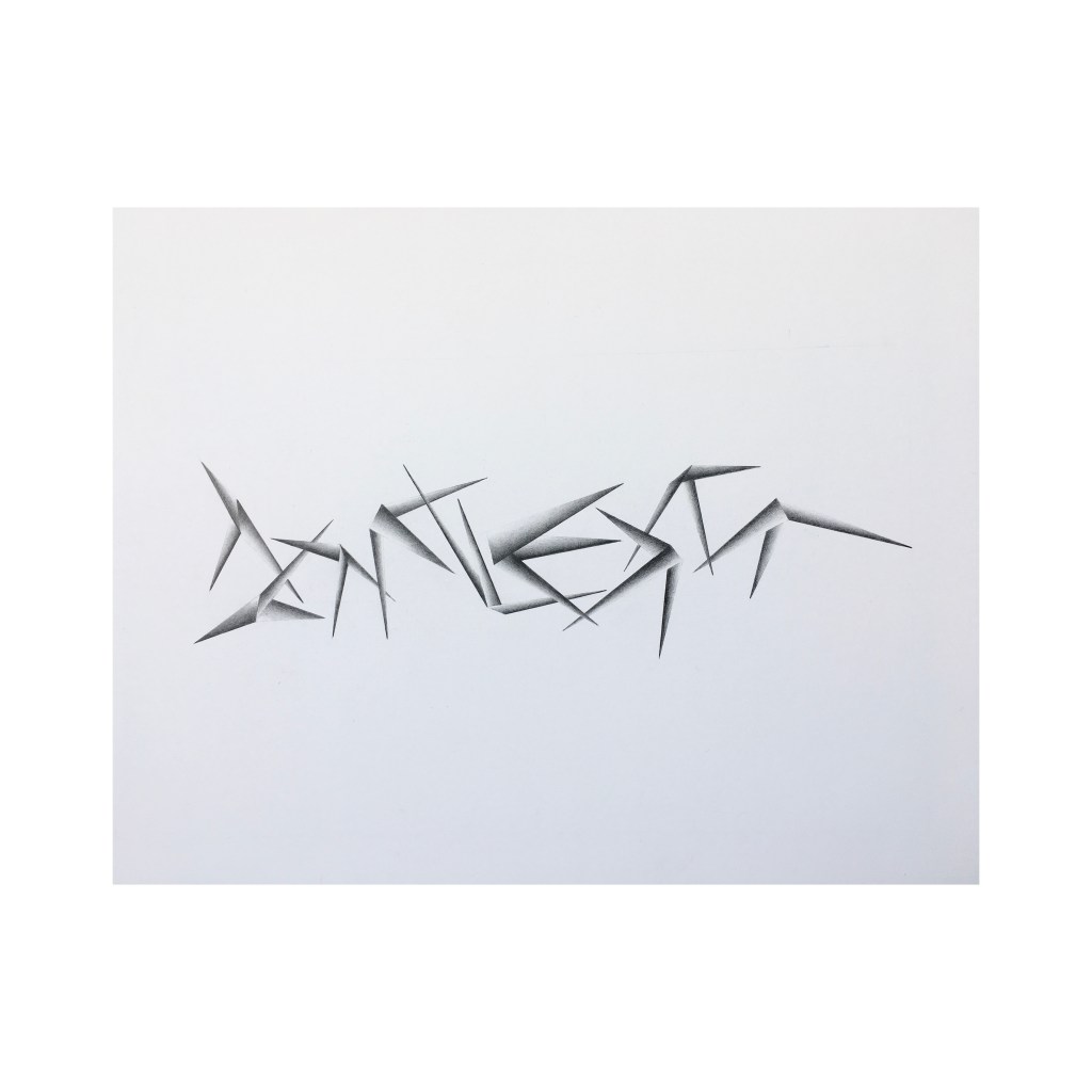 June ’19 (drawing), graphite on paper, 35 x 25cm. – Dec ’18 (painting 4), acrylic on panel, 12 x 9 inch. – Aug ’19 (fall), graphite on paper, 45 x 33cm.February drawing, cluster